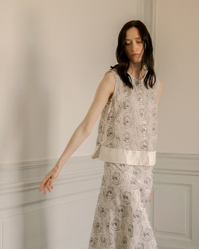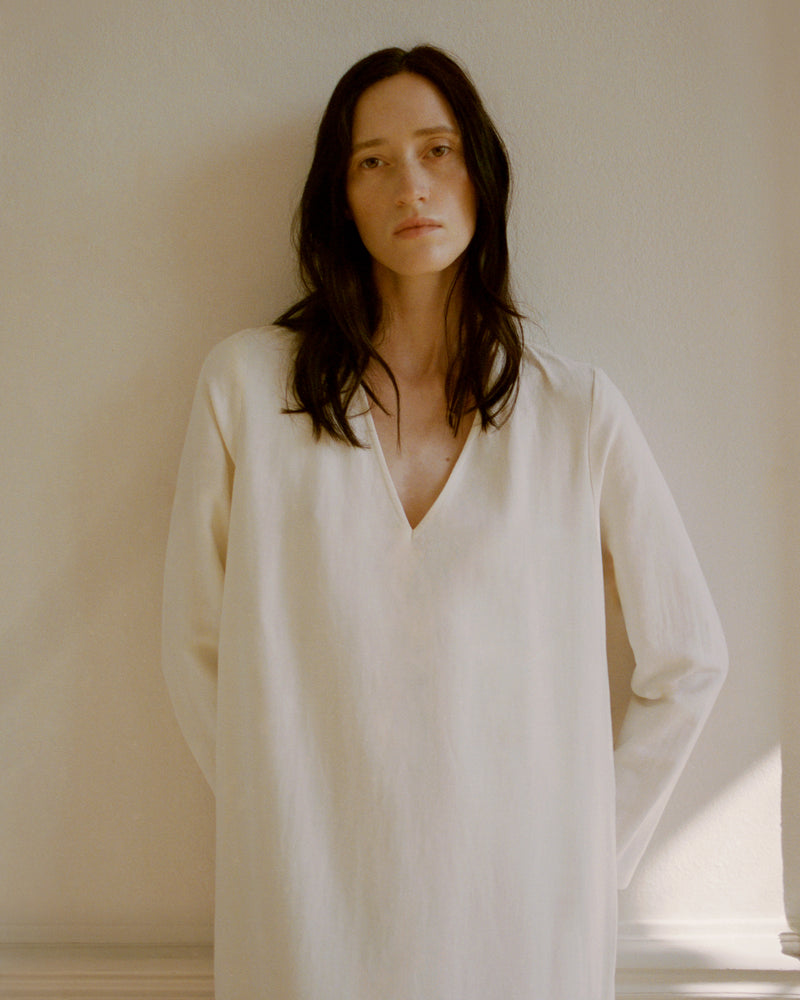 SS26 hylder det rolige rum, hvor begyndelser tager form, og hvor tilstedeværelse er det bærende. Silhuetterne er flydende, åbne og dybt feminine. Hvert design er skabt til at bevæge sig med kroppen og ikke imod den.