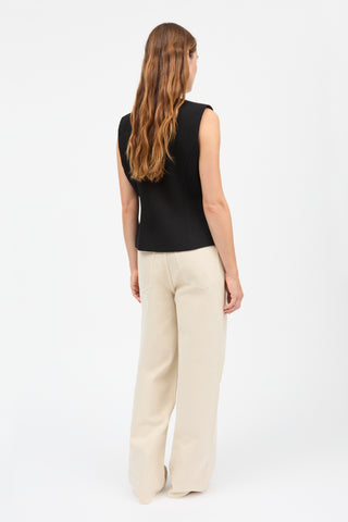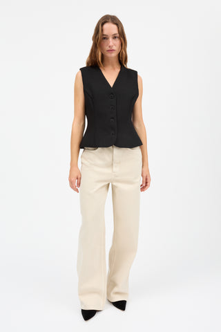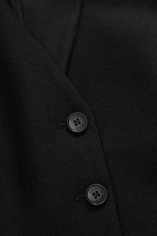Ari Vest er en klassisk vest med V-udskæring, figursyet i taljen og med længde til hoften. Fire store knapper lukker foran mellem de flatterende, formskårne paneler.