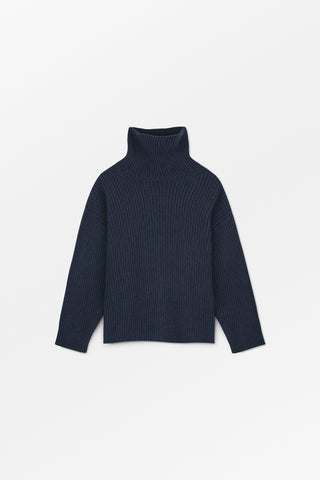 Diana Turtle Neck Jumper er en varm og elegant sweater i kraftig ribstrik med høj, foldet rullekrave. Strikket i 100% uld med en afslappet pasform og lige ærmer. Diskrete formstrikkede detaljer ved halsen giver et raffineret finish.