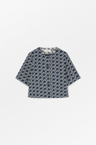 Hill Blouse er en kort, kraveløs top med brede T-shirt-inspirerede ærmer. Den lukkes med knapper foran, har små slidser i siderne og skuldersømme, der er rykket en smule frem. Fremstillet i 100% økologisk bomuld.