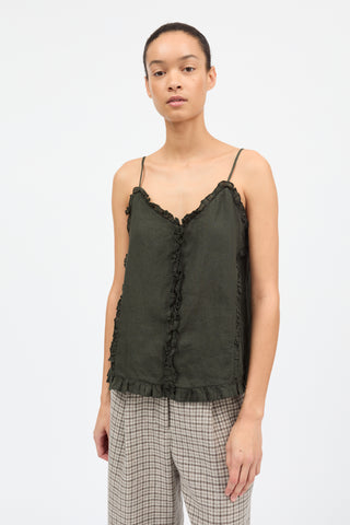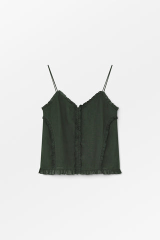 Madeleine Cami Top er en feminin top med fine flæser, der løber rundt om halsudskæringen, langs bunden samt ned ad front og sider. Flæserne er sirligt afsluttet med babylock-søm, og toppen har smalle, justerbare spaghetti-stropper for den perfekte pasform.