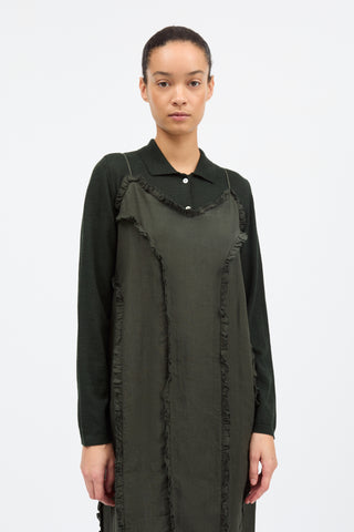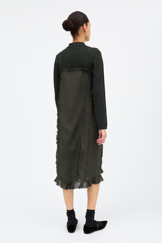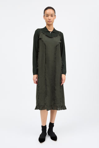Madeleine Dress er en kjole, der har justerbare spaghetti-stropper og går til midt på læggen. Delikate, enkeltlagede flæser, sirligt afsluttet med babylock-søm løber rundt om halsudskæringen og langs bunden samt langs forside, sider og ryg.