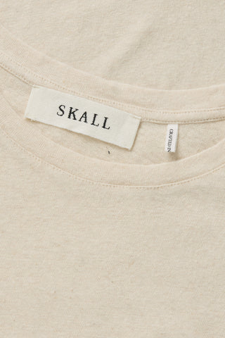 Blød t-shirt med rund hals og lettere løst fit i bomulds- og hørblanding.