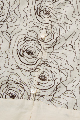 Gennemknappet top i fuldbroderet rosemønster.
