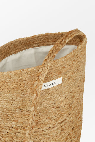 Flettet taske med lang crossbody-rem og diskret logo foran.