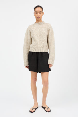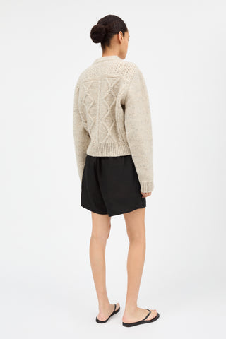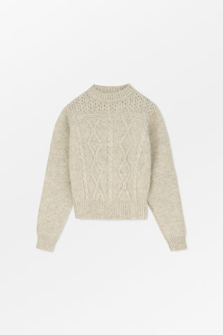 • Blonde-, perle- og kabeldetaljer• Ribkanter ved hals, ærmer og bund