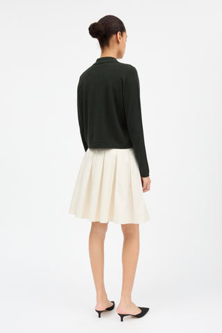 Valse Skirt er en feminin, plisseret nederdel med dybe læg, der går til lige over knæet. Fremstillet i 100% økologisk bomuld, med lommer og en skjult lynlås i siden.